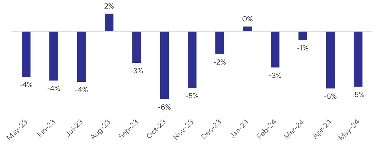 Figure 1: National SEEK job ad percentage change m/m May 2023 to May 2024