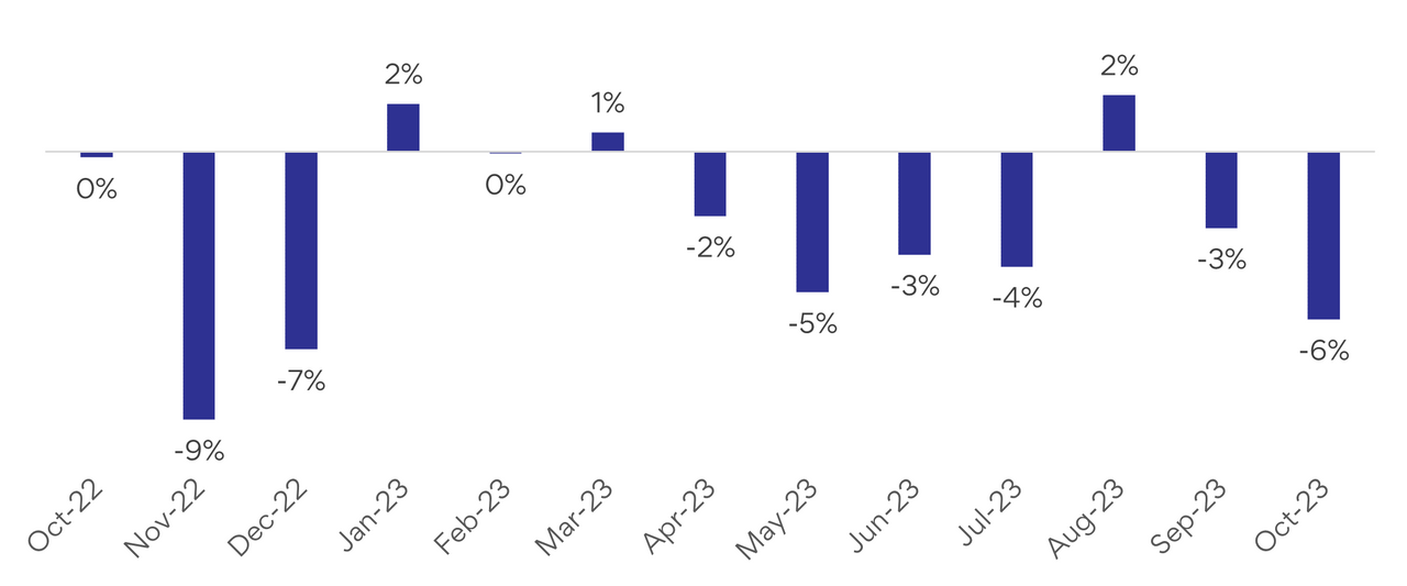 Figure 1: National SEEK job ad percentage change m/m October 2022 to October 2023