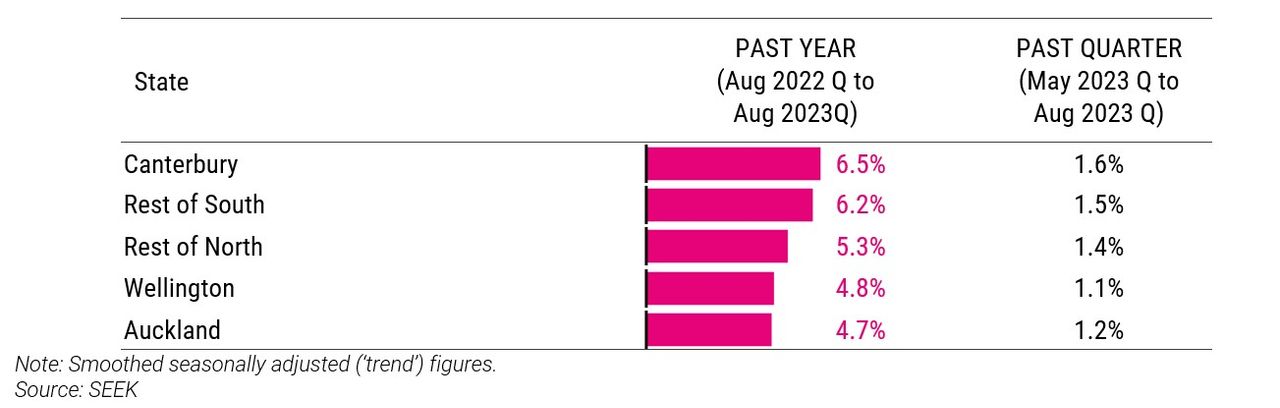 “All regions recorded strong growth over the past year, but the South Island outpaced the North, with advertised salaries in Canterbury rising 6.5% in the year to August.”