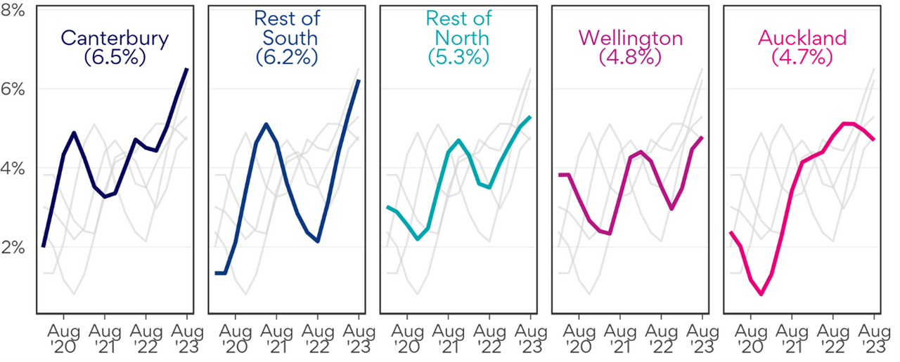 The fastest growth was in Canterbury (6.5%).