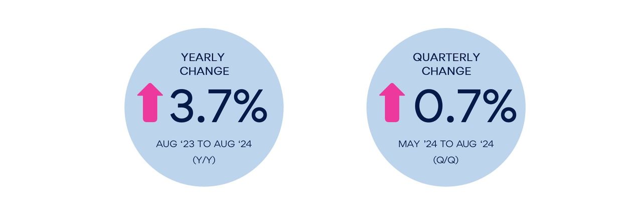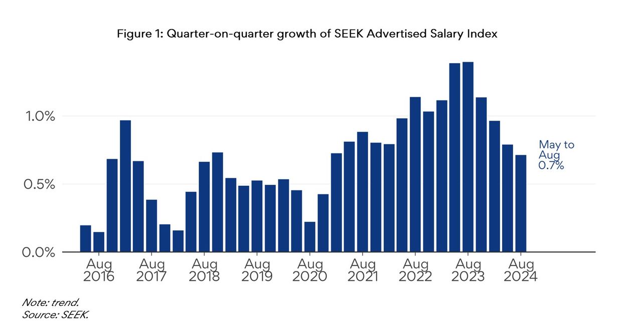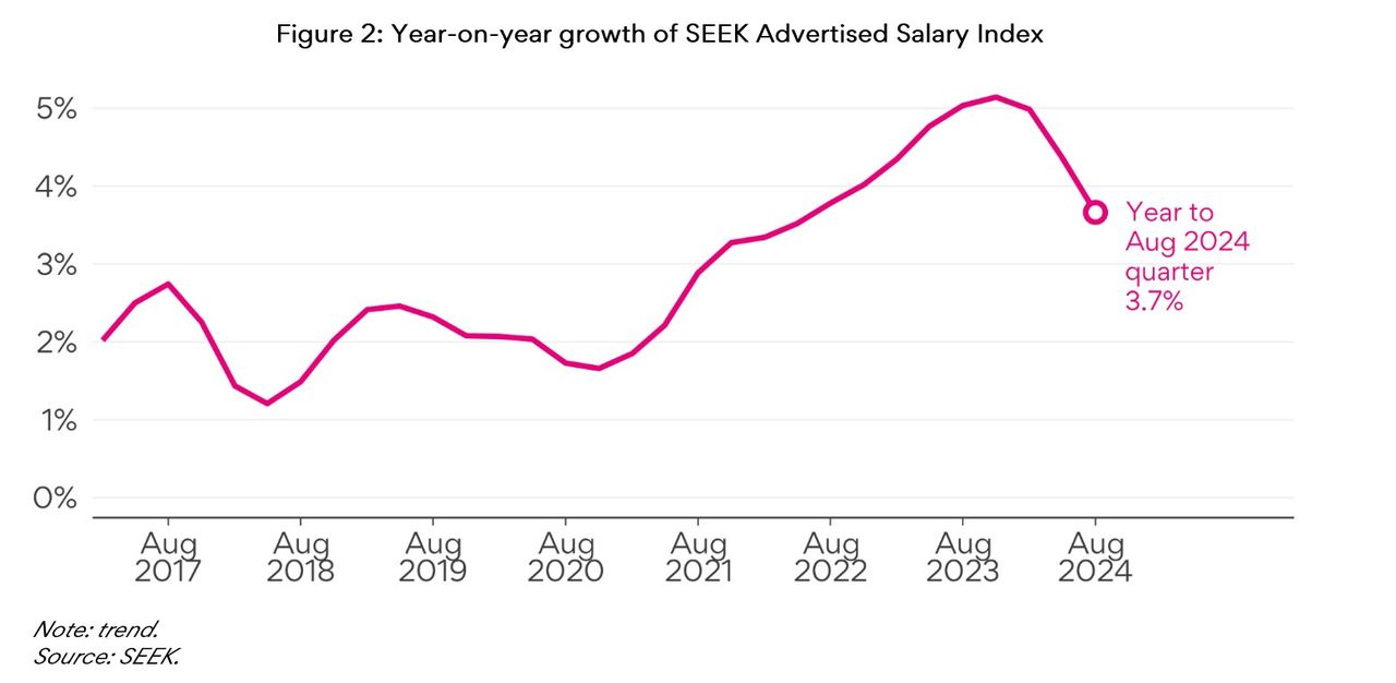 Average advertised salaries grew 3.7% in the year to August, slowing from 4.4% the previous quarter.