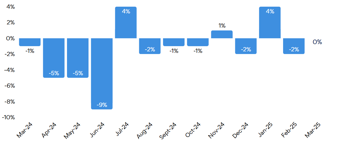 Figure 1: National SEEK job ad percentage change m/m (March 2024 to March 2025)