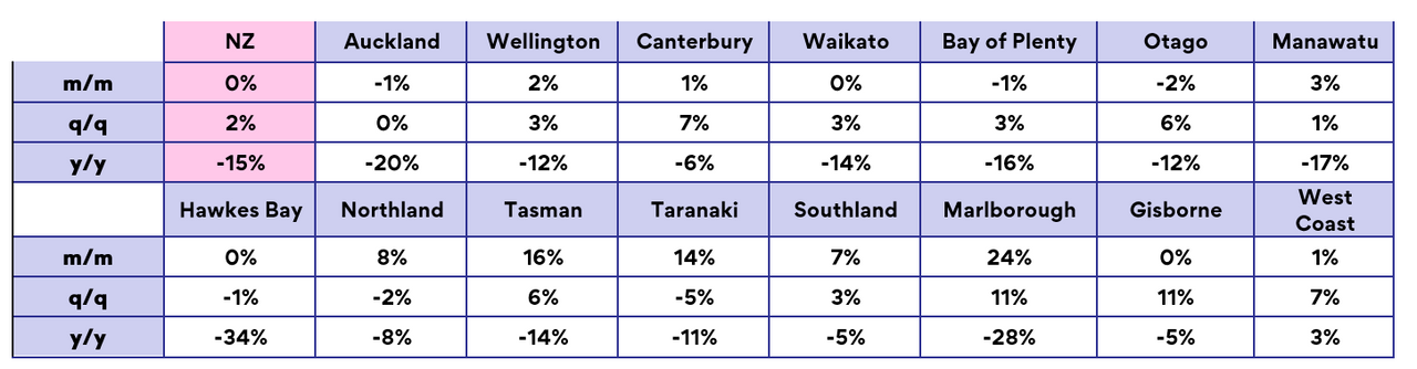 While Auckland declined (-1%), Wellington (2%) and Canterbury (1%) were the only large regions to record job ad growth m/m.