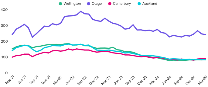 All regions recorded growing applications per job ad m/m, aside from Tasman (-8%), Marlborough (-2%) and Wellington, where there was no change. Waikato (8%), Manawatu (7%) and Otago (6%) were among the regions that saw notable jumps in applications per job ad in February.