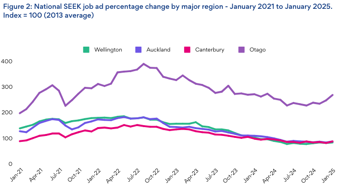 “There have been smaller fluctuations month-on-month during the past half-year and pockets of broad growth in some of the larger regions in recent months, such as Wellington and Otago. In Otago in particular, rising demand for Hospitality & Tourism workers has driven growth for the past few months.