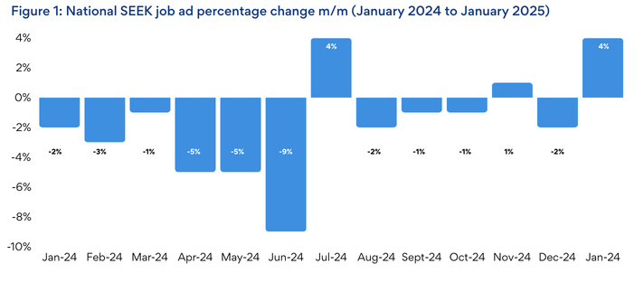 “After six months of consistently falling job ads in the early half of 2024, the rate of decline in the past six months has slowed. While it was pleasing to see growth in January, it is a bit too early to say that volumes have stabilised.