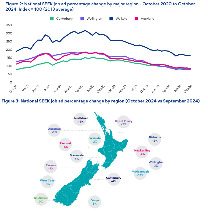 “Some regions, including Wellington and Waikato saw job ads rise in October, which is positive given the many months where the larger regions declined.”