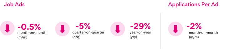 Applications per job ad fell for the first time in a year, declining 2% m/m*.