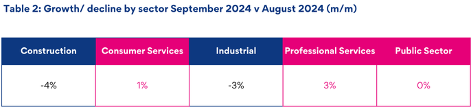 Professional Services industries recorded solid growth in September, including Insurance & Superannuation (27%), Legal (11%) and Information & Communication Technology (3%).