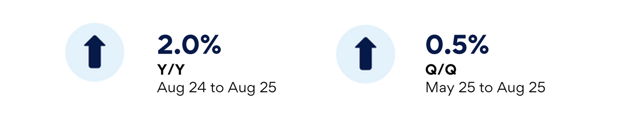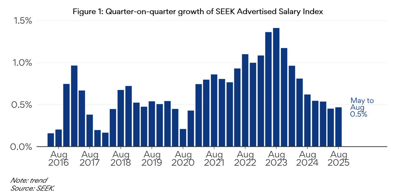 Annual advertised salary growth slowed to 2.0% y/y in August, this has now declined 3.1ppt since 2023.