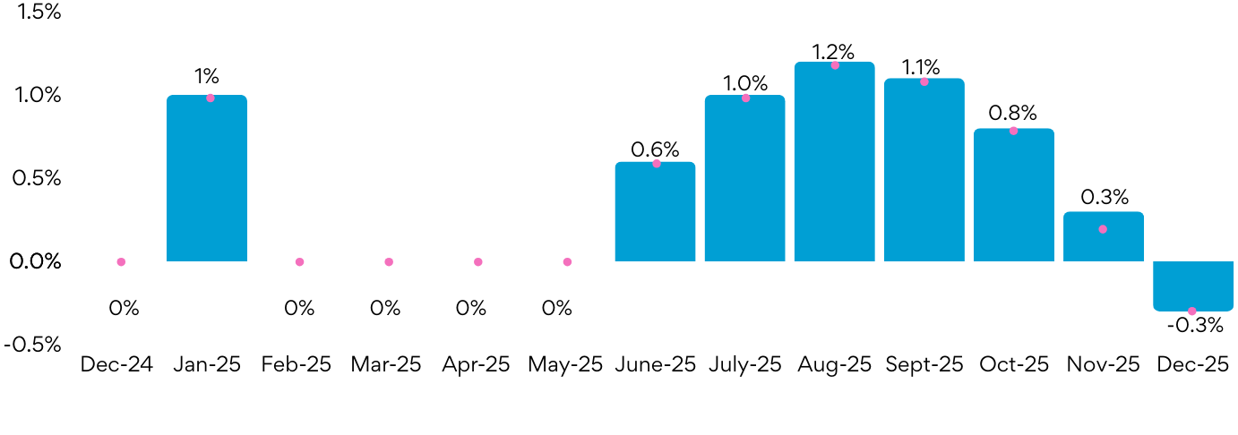 1. From this report the data is reported to one decimal place for the period June 2025 – December 2025 and moving forward. This allows us to report more accurately on small changes in trend.